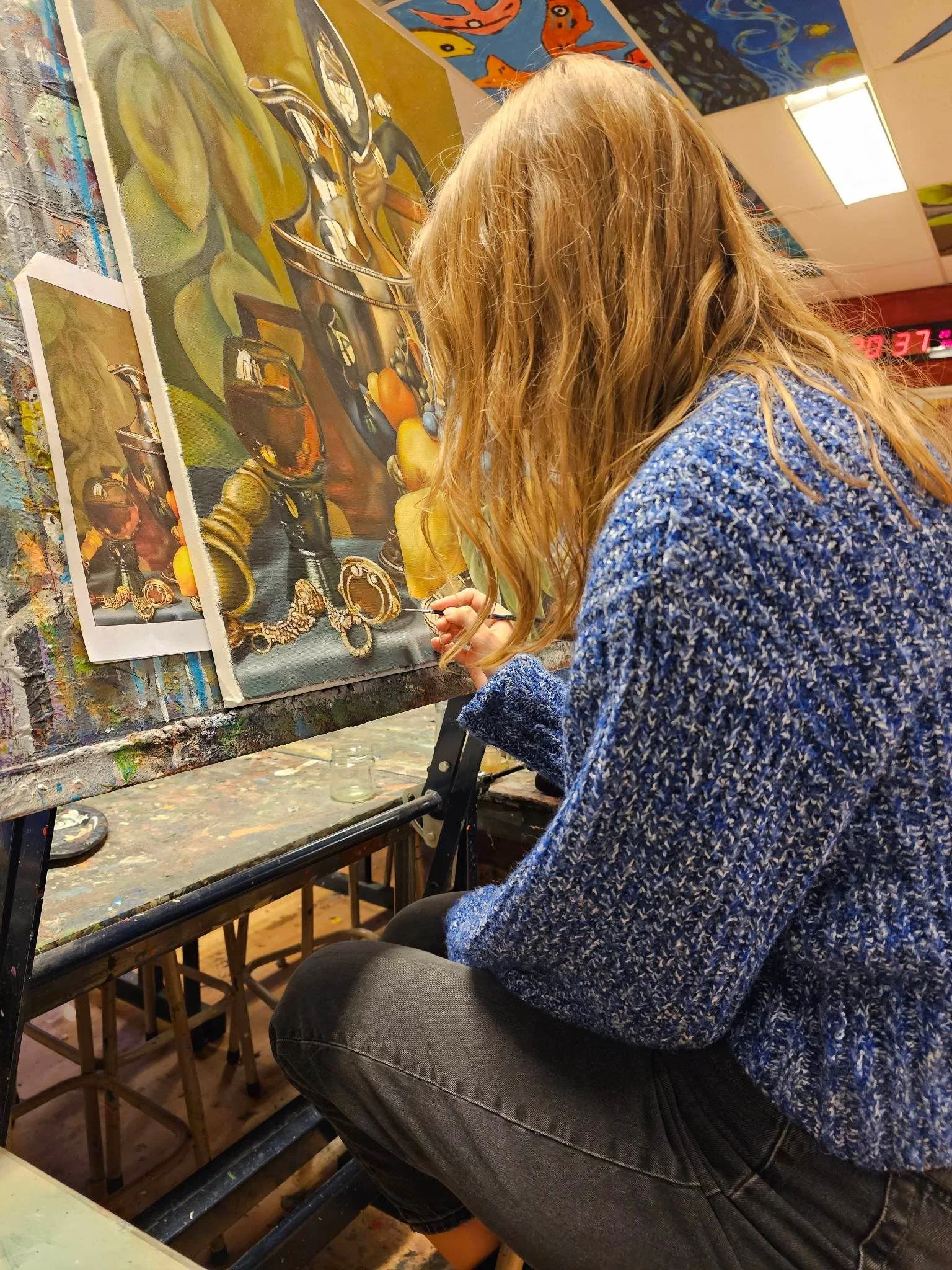 Nieuwe leden mogen twee weken proefdraaien voordat ze hun eigen materialen, zoals kwasten, stiften, potloden en acrylverf, meenemen. Ons atelier biedt een warme en gezellige sfeer waar hechte vriendschappen ontstaan. De jongste groep mag na het schilderen de laatste 10 minuten buiten de spieren losmaken, terwijl de oudere groep vaak nog even gezellig napraat in de kantine met thee en chocola.